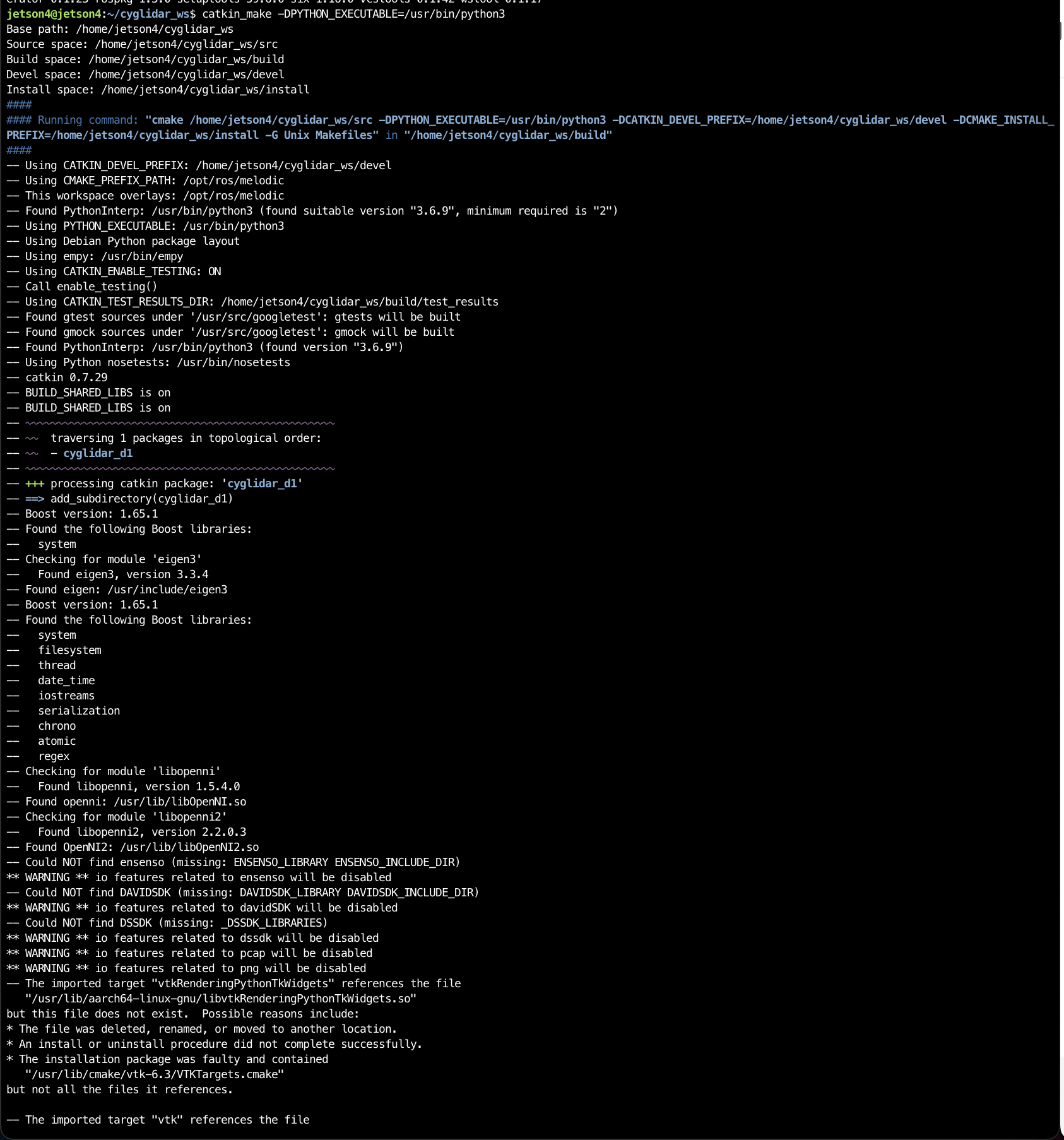 이는 cmake 과정에서 import 할 패키지가 없을 경우에 발생한다.